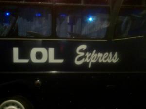 After spending Friday afternoon crazy battling with the BBC’s Topcat2 with my girl Wanjeri in attendance, we finally leave the office at around 6pm for Nairobi’s downtown to book tickets for the morning bus! Unfortunately we couldn’t do this trip together as she had a must attend wedding for the next day but i sure convinced my cousin Miss JJT to accompany me 🙂 When we got to downtown, it was certainly hard to get them bourgeoisie buses as they were all fully booked till sat afternoon but we got lucky and got the last seats on the Sat 8.30 a.m Mash bus! Na katika pita pita zetu, some costarian man tried to convince us to take the LOL express, and i was like LOL Express, really? No thanx, here is the evidence 🙂 LOL, see?