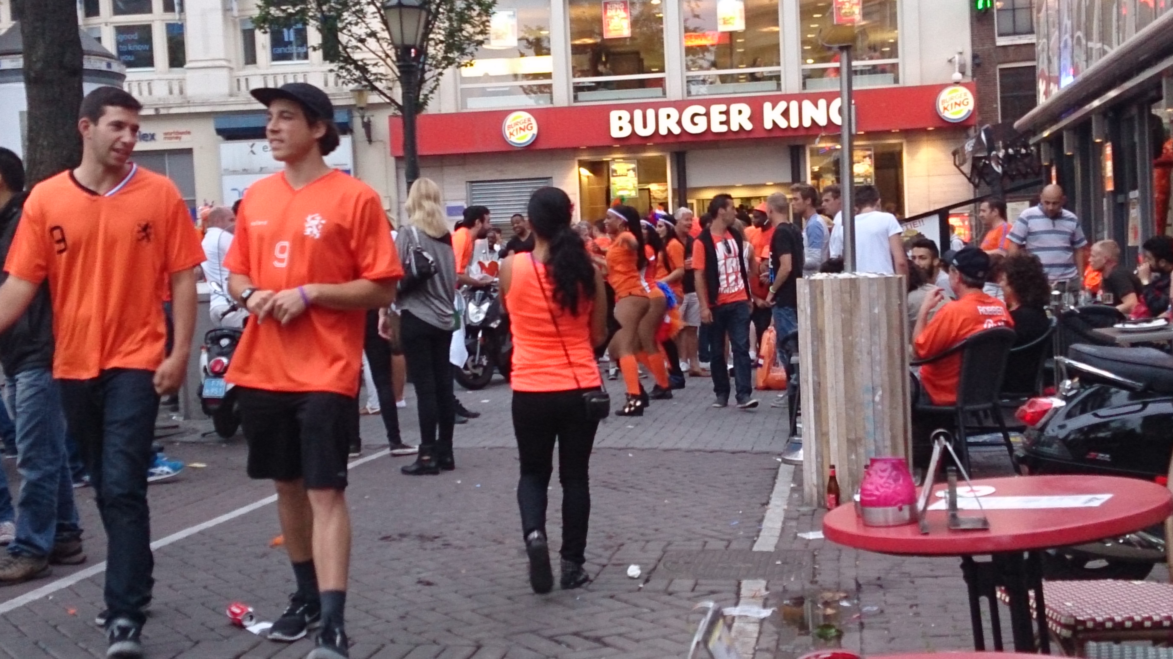 NL is kind of under-performing and now everyone is crossing fingers hoping we don’t get to penalties. My cousin Alicia in Costa Rica sends a message saying, “Costa Rica guys are going crazy”. But NL people are really going insane; a lot of people have stormed out of premises and others, especially women are crying. Others have taken into drinking more beer. When NL finally wins, even I am relieved. The penalties brought a lot of tension and agitation. Leidseplein Square transforms into a rowdy orange party zone. As we walk home, people are beer drinking, singing and dancing. I can decipher the patriotic serenity that comes with your country trumping another at World Cup; it feels so good; but I can’t imagine how it would feel to lose. I would feel so whack going to bed.