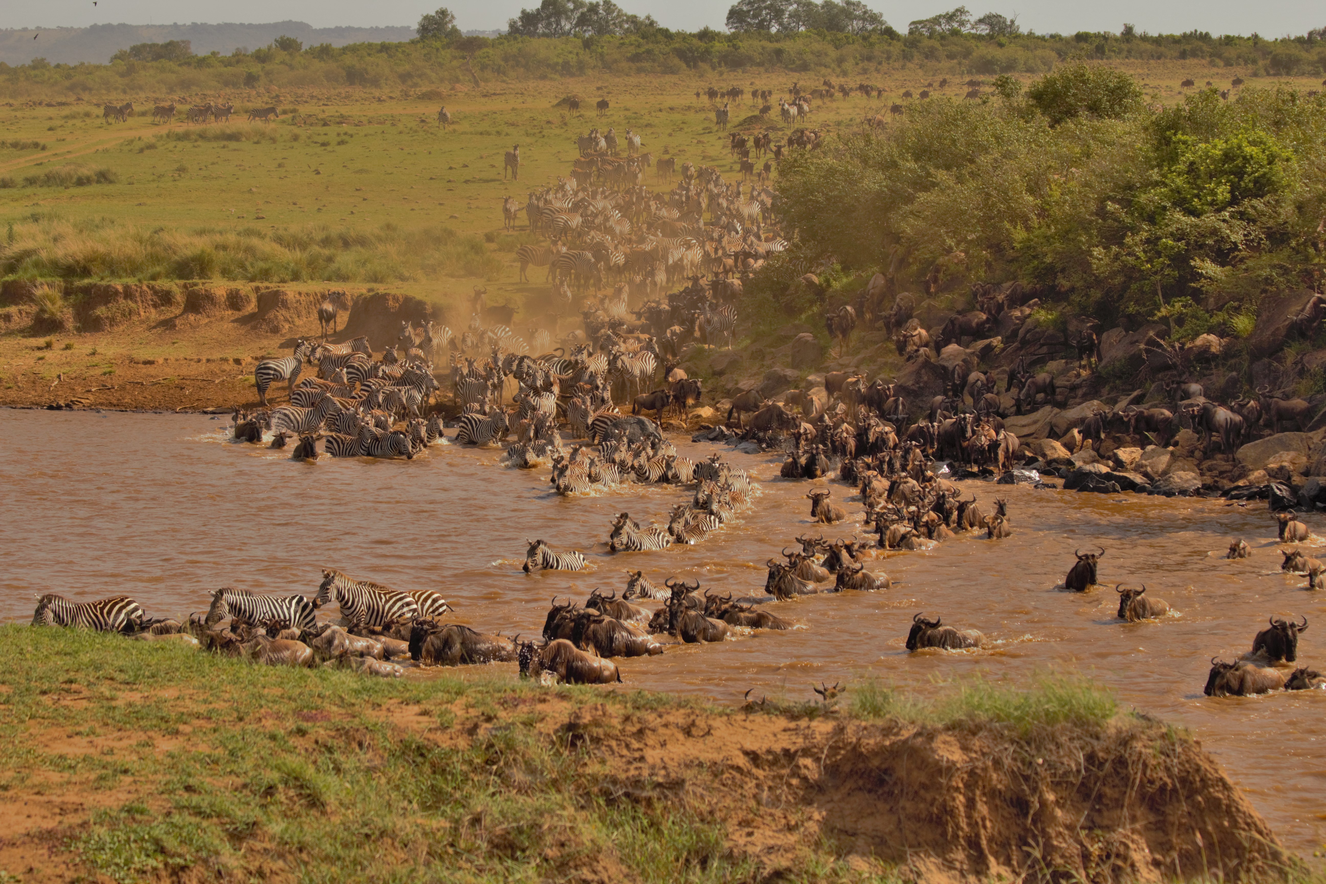 BONUS: The Serengeti Mara ecosystem consisting of Tanzania’s Serengeti, Kenya’s Maasai Mara, surrounding conservancies and ranches forms the stage for the biggest show of wildebeest migration, yearly. All migrations differ in exact time and character. Food and rain remain a constant push factor despite the mystery surrounding why wildebeests migrate and cross Mara’s deadly waters, even when their current location has perfectly lush grass and water. This is the World’s Seventh Wonder.